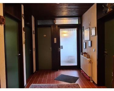 - Innentüren: raumhohe Holztüren, edelholzfurniert, mit Oberlicht (Glaseinsatz im oberen Bereich)