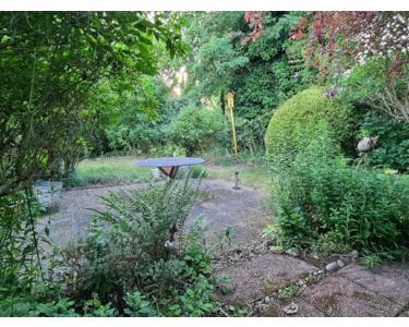 Von einem ca. 21 m² großen integrierten atriumähnlichen Wintergarten, der mit einem offenen Kamin ausgestattet ist und auch als Kaminzimmer genutzt wird, gelangt man an der Westseite des Hauses ebenerdig auf das naturnah angelegte Gartengrundstück, das komplett eingefriedet und als Rasenfläche mit Ziersträuchern angelegt ist.