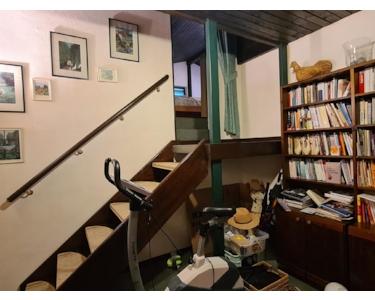 Die Fußböden sind im ca. 38,5 m² großen Wohn- und Essbereich Terrakottafliesen, Parkettboden im Elternschlafzimmer, im ca. 19 m² großen Kinder- oder Jugendzimmer mit Galerie Teppichboden bzw. Dielenboden auf dem höher gelegenen Galeriebereich.