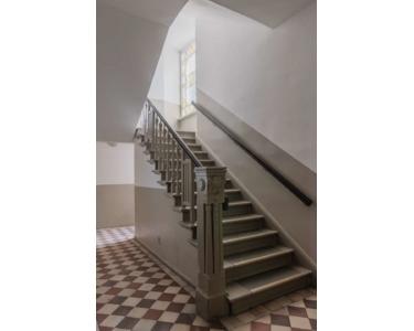 Das Gemeinschaftseigentum präsentiert sich gepflegt: Frisch gestrichene Treppenhäuser schaffen ein freundliches Erscheinungsbild und heißen Besuchende wie Mitarbeitende gleichermaßen willkommen.