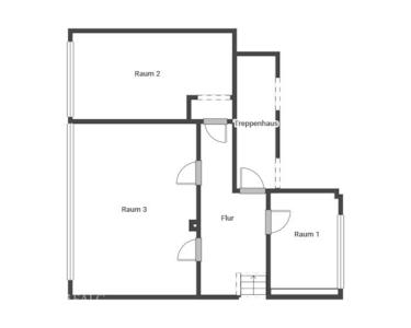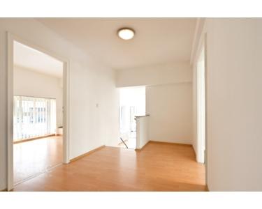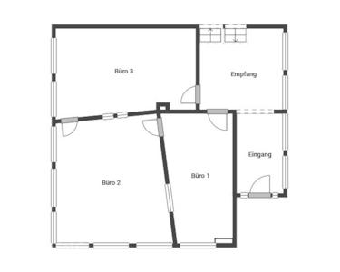 Über eine weitere interne Treppe gelangen Sie vom Flur aus in das darüberliegende Zwischengeschoss. Hier befinden sich drei weitere Räume: ein kleiner Raum, ein größerer Raum mit zwei Eingängen sowie ein weiterer Büroraum. Zusätzlich ist von diesem Zwischengeschoss auch das gemeinschaftliche Treppenhaus direkt erreichbar.
