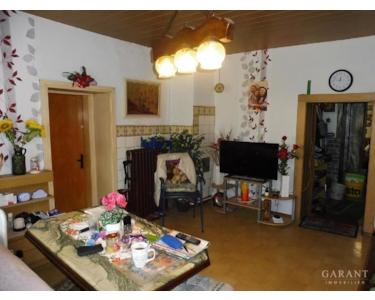 Im Erdgeschoss mit insgesamt ca. 109 qm Wohn- und Nutzfläche befinden sich Wohn- und Esszimmer, Bad und WC, Küche sowie Hauswirtschafts-, Lager- und Abstellräume. Im Obergeschoss befinden sich auf insgesamt ca. 171 qm Wohnfläche 7 Wohn-, Schlaf- und Kinderzimmer, Flur, Küche und Badezimmer. In den letzten Jahren wurden nur noch einzelne Räume im Erdgeschoss zu Wohnzwecken genutzt. Straßenseitig ist eine Garage angebaut, welche einen direkten Zugang zum Wohnhaus besitzt. Das Garagendach ist für eine Terrassennutzung geeignet. An der Ostseite bietet ein großer Carport Unterstellmöglichkeiten für weitere Pkw oder Wohnwagen bzw. Wohnmobil. Das Haus ist teilunterkellert. Die Brauchwasserentsorgung erfolgt über eine regelmäßig zu entleerende Klärgrube.