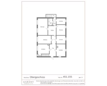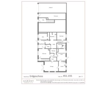 Im Erdgeschoss mit insgesamt ca. 109 qm Wohn- und Nutzfläche befinden sich Wohn- und Esszimmer, Bad und WC, Küche sowie Hauswirtschafts-, Lager- und Abstellräume. Im Obergeschoss befinden sich auf insgesamt ca. 171 qm Wohnfläche 7 Wohn-, Schlaf- und Kinderzimmer, Flur, Küche und Badezimmer. In den letzten Jahren wurden nur noch einzelne Räume im Erdgeschoss zu Wohnzwecken genutzt. Straßenseitig ist eine Garage angebaut, welche einen direkten Zugang zum Wohnhaus besitzt. Das Garagendach ist für eine Terrassennutzung geeignet. An der Ostseite bietet ein großer Carport Unterstellmöglichkeiten für weitere Pkw oder Wohnwagen bzw. Wohnmobil. Das Haus ist teilunterkellert. Die Brauchwasserentsorgung erfolgt über eine regelmäßig zu entleerende Klärgrube.