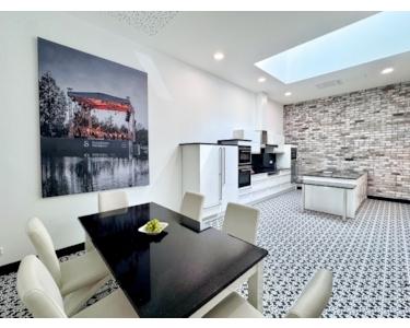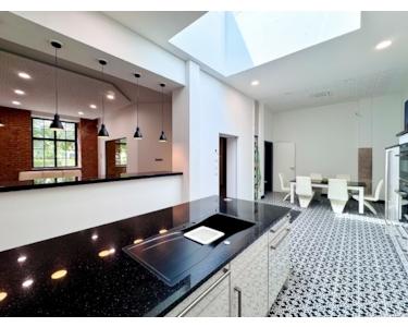 Die großzügige Raumstruktur, geprägt von sichtbaren Backsteinwänden und einer beeindruckenden Deckenhöhe von vier Metern, sorgt für eine offene und einladende Atmosphäre.