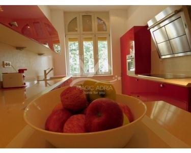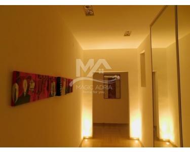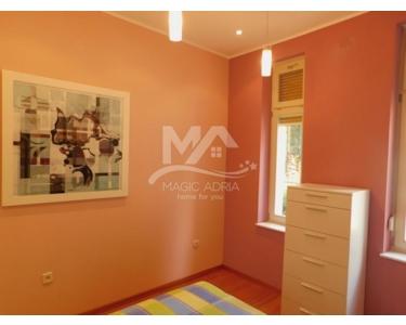 Die Wohnung verfügt über 2 Schlafzimmer, Bad, Küche und Esszimmer sowie Wohnzimmer. Das Wohnzimmer öffnet sich zu einem Balkon und einer Loggia, die einen freien Blick auf das Meer und die Kvarner Bucht bietet. Die Wohnung hat auch eine Garage und einen Parkplatz im Freien. Die Wohnung hat auch eine Sommerküche mit einer großen Terrasse auf dem Hof. Das Anwesen ist einzigartig auf dem Markt mit einer Gesamtfläche von 144m2, von denen die Wohnung 117m2 + Garage 17m2 + Sommerküche 10m2 hat. Die Wohnung wurde vor einigen Jahren komplett renoviert, die Fassade der Villa wurde 2014 renoviert und das neue Dach wurde 2006 gebaut.