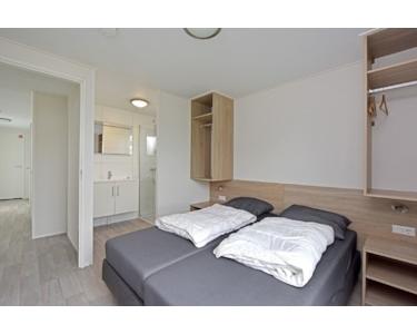 Wenn man zurück in den Flur geht, kommt man zu den beiden Schlafzimmern, beide mit eigenem Bad. Beide Schlafzimmer können 2 Personen beherbergen.