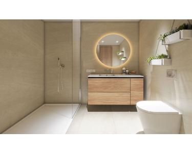 Die Wohnanlage wird nach aktuellen EU-Baurichtlinien für optimale Schall- und Wärmeisolation erbaut und bietet eine hochwertige Ausstattung. Die Küche ist vollständig in hellen Farben möbliert, die Arbeitsplatte hat einen ähnlichen Farbton. Zur Ausstattung gehören außerdem ein Induktionskochfeld, ein Ofen und eine Abzugshaube. Die Bäder sind mit Hängewaschtischen aus Holz mit einem oder zwei Waschbecken, je nach Bauplanung, Dusche mit bodengleicher Duschtasse und Unterputzarmaturen der Marke Tres ausgestattet. Für alle Räume der Wohnungen wurden großformatige Porzellanbodenfliesen der Marke Saloni ausgewählt. Die Verfliesung der Terrassen erfolgt mit demselben Modell in rutschfester Ausführung. Jede Wohnung ist mit einer Luft-Luft-Wärmepumpe mit Split-System in der Deckenabhängung und Verteilung über Luftkanäle und Gitterauslässe klimatisierbar. Darüber hinaus gibt es eine Wärmepumpe zur Warmwasserproduktion. Sowohl das Haupt- als auch das zweite Badezimmer verfügen über eine elektrische Fußbodenheizung. Zu jeder Wohnung gehört außerdem ein PKW-Stellplatz im Außenbereich.
