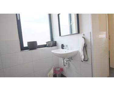 Die Ausstattung der Gewerbefläche ist hochwertig und zeitgemäß. Die Sanitäranlagen sind modern gestaltet und überzeugen durch klare Linien und pflegeleichte Oberflächen. Funktionale Details wie eine kompakte Küchenzeile und stilvolle Bodenbeläge runden die Einheit ab.