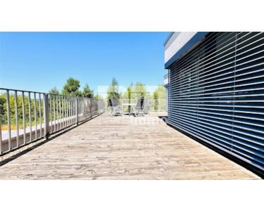 Die gigantische Dachterrasse strahlt mit einem edlen Douglasien Echtholzbelag.