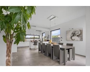 Viel Tageslicht, intelligente Details und mit besonderem Stilgespür versehene Einbauten - diese Immobilie vermittelt modern-zeitloses Wohnflair! Abgerundet wird dieses Wohnangebot durch eine in das Erdgeschoss integrierte Doppelgarage.