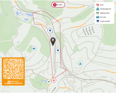 Fußläufig erreichbar: Lebensmittelgeschäfte, Schulen, Kindergärten und medizinische Versorgung befinden sich in wenigen Minuten zu Fuß und machen viele tägliche Wege mit dem Auto überflüssig