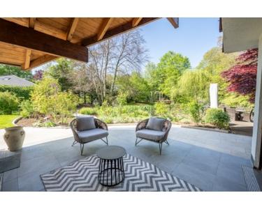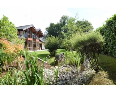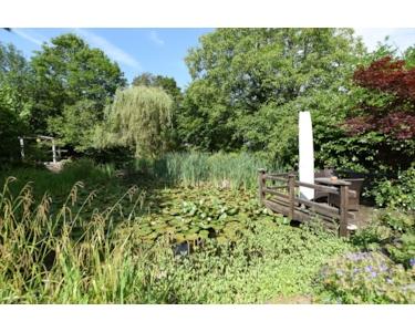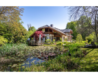 Genießen Sie die Natur auf den zwei überdachten Balkonen oder erkunden Sie das Parkgrundstück in Südwest-Ausrichtung mit eigenem Obst- und Gemüsegarten. Ein idyllischer Weiher mit Badesteg und Springbrunnen lädt zum Verweilen ein.