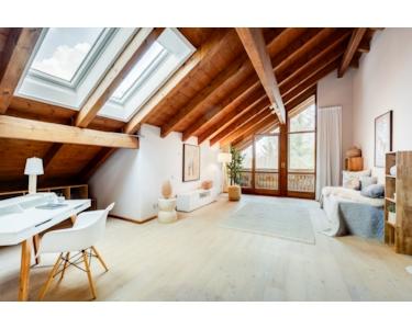- Wohnbereich mit hohen Decken und offener Galerie