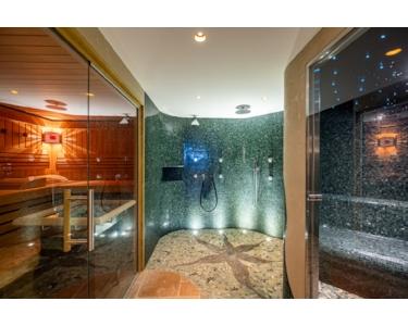 - einzigartiger Wellnessbereich mit Sauna, Dampfsauna, Whirlpool, Regendusche im Souterrain