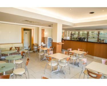 Für eine angenehme Raumtemperatur sorgt die Klimaanlage. Zusätzlich finden auch im Außenbereich noch ca. 30 Personen einen gemütlichen Sitzplatz in der Sonne.