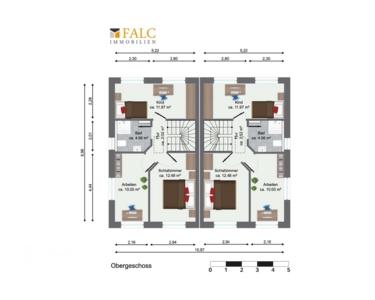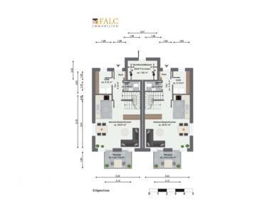 Jede Doppelhaushälfte bietet eine Gesamtwohnfläche von ca. 111 m². Das Haus verteilt sich über zwei Vollgeschosse und ein ausgebautes Dachgeschoss, das als zusätzlicher Abstellraum dient. Die genaue Grundstücksgröße wird auf Anfrage bereitgestellt.