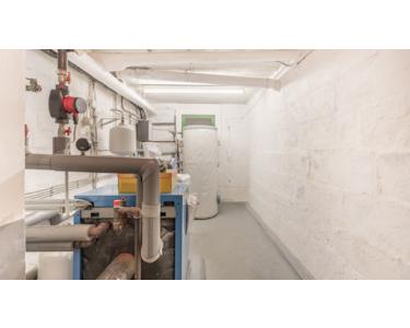 Die Küche ist funktionell und einfach mit Ober- und Unterschränken sowie den notwendigen Elektrogeräten ausgestattet und direkt angrenzend befinden sich dahinter ein Gästezimmer sowie die Treppe, die in den Teilkeller des Hauses führt. Hier steht ausreichend Platz für Vorräte, Staumöglichkeiten und Waschmaschine sowie Heizungsanlage und Öltanks zur Verfügung.
