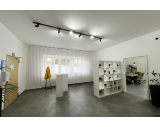 Die beiden Hauptbereiche bieten ausreichend Platz für Einzel- oder Teamarbeitsplätze, Kundenbereiche oder auch eine kombinierte Nutzung aus Arbeits- und Besprechungszonen. Große Fenster sorgen für angenehmes Tageslicht und eine freundliche Arbeitsatmosphäre. Das WC ist separat gelegen und zentral erreichbar.