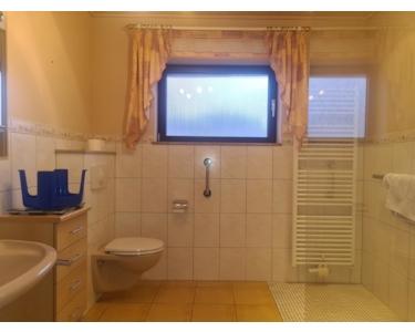 Windfang, Wohndiele, Gäste-WC, Küche, Esszimmer, großes Wohnzimmer mit Ausgang auf große teilweise überdachte Terrasse und Freisitz, Schlafzimmer, Bad (behindertengerecht, große ebenerdig begehbare Dusche mit Glasabtrennung, Waschbecken, WC), Kinder- oder Arbeitszimmer