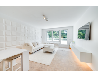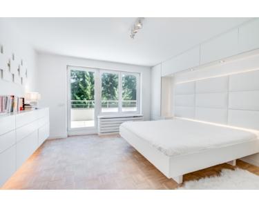 Die komplette Wohnung ist mit einem hochwertigen, weiß gekalkten Echtholz-Parkettboden ausgestattet. Das Bad und die Küche wurden modern und fugenlos gestaltet und verfügen über eine effiziente Fußbodenheizung sowie hochwertige Schreiner-Einbauten und Markengeräte.