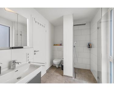 Das Dachgeschoss verfügt über einen, vom Treppenhaus abgetrennten, Raum mit ca. 11,4 m² und über ein weiteres Duschbad. Auf der hier erreichbaren Süd-West- sowie Nord-West-Dachterrasse empfängt man die Nachmittags- und Abendsonne.