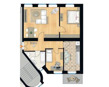 Ob als stilvolle Singlewohnung, modernes Home-Office mit Rückzugsort oder neues Zuhause für die kleine Familie – diese Wohnung passt sich Ihren Bedürfnissen flexibel an.