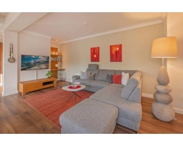 * offenes Wohnkonzept mit moderner Sofa-Lounge & großem Flatscreen-TV