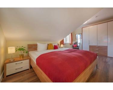 * zweites Schlafzimmer mit Doppelbett und großem Kleiderschrank