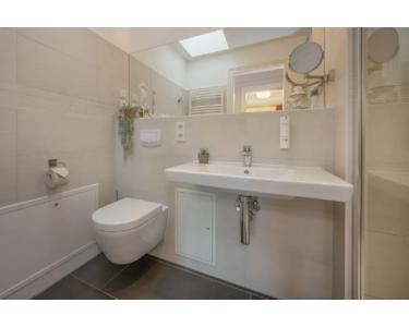 das moderne Badezimmer ist durch das Oberlicht besonders hell ...