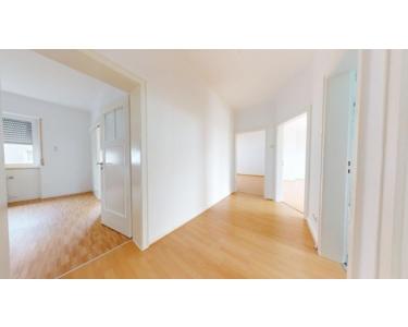 3 Zimmer, davon ein Zimmer mit Zugang zum Balkon; Küche, Tageslichtbad, großer Dielenbereich, Abstellraum mit Waschmaschinenanschluss + Abstellraum im Keller