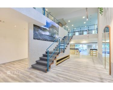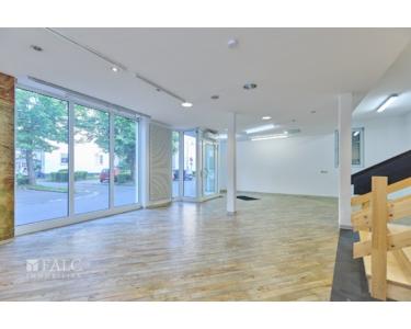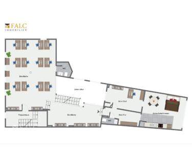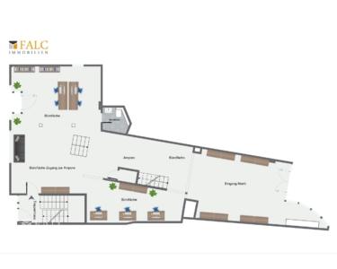 Die rund 270 m² große Gewerbefläche verteilt sich auf zwei Etagen und ist über zwei separate Eingänge zugänglich – einer davon direkt vom Marktplatz, der andere von der Schleidanusstraße mit direkter Anbindung an den öffentlichen Parkplatz.