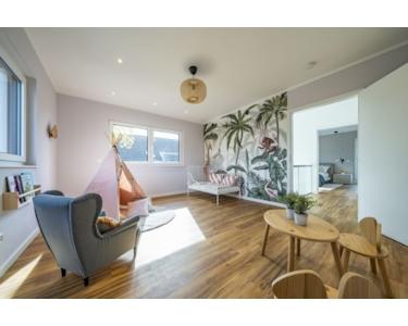 Die STREIF-Passiv-Haus-Wände, eine effiziente Heiztechnik mit integrierter Wohnraumlüftung und Wärmerückgewinnung garantieren einen geringen Energieverbrauch und ein fantastisches Raumklima, das insbesondere Allergiker aufatmen lässt.