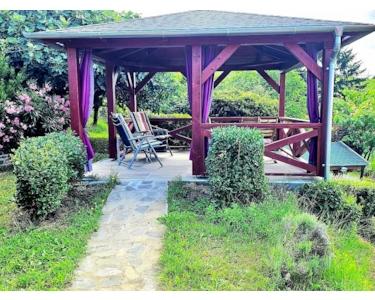 Neben der Terrasse im Obergeschoss befindet sich außerdem ein Gartenpavillon. So gibt es insgesamt vier Möglichkeiten zum Entspannen und Abendessen im Freien, alle mit Blick auf den Plattensee. Dass, hinter dem Haus der Badacsonyberg erhebt, trägt zum Erlebnis bei.