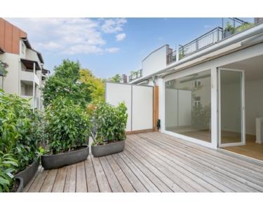 Ein weiteres Highlight erwartet Sie im obersten Stockwerk: Ein gemütlicher, lichtdurchfluteter Wohnbereich führt auf eine beeindruckende Dachterrasse mit perfekter Südausrichtung. Diese seltene Oase mitten in der Stadt bietet Ihnen individuelles Wohnen auf höchstem Niveau und lädt zum Entspannen oder geselligen Beisammensein ein – ein echtes Juwel in dieser einmaligen Lage.