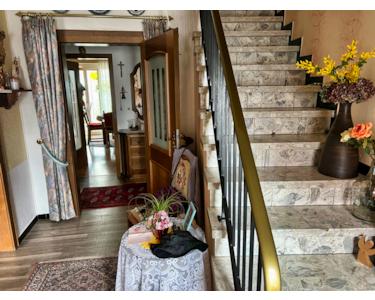 Ein besonderes Highlight ist die Marmortreppe, die ins Dachgeschoss führt – ein Badezimmer und drei weitere lichtdurchflutete Räume. Auch das Erdgeschoss bietet eine vollwertige Einbauküche und ist mit hochwertigen Bodenbelägen aus Fliesen, Parkett und Laminat ausgestattet. Das Bad wurde 2021 renoviert.