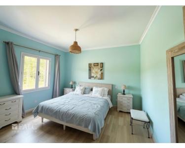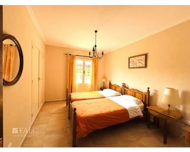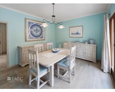 Das Haus erstreckt sich über eine einzige, komfortable und funktionale Etage mit etwa 135 m² Wohnfläche. Im Inneren befinden sich eine Küche, ein großes und helles Wohn-Esszimmer mit Kamin, ein zweites, gemütlicheres Wohnzimmer, drei Schlafzimmer mit Einbauschränken, zwei vollständige Badezimmer, ein Gäste-WC sowie Abstellräume.