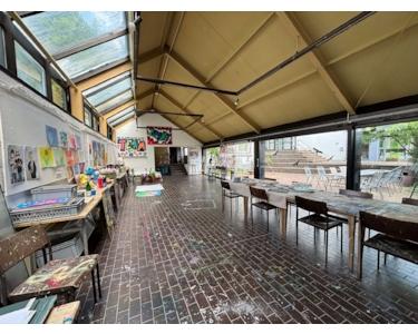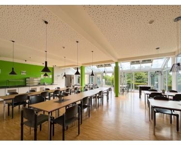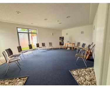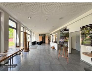 Flexibel nutzbare Konferenzbereiche - hier finden je nach Raumkonfiguration bis zu 150 Personen Platz - 7 Gruppenarbeitsräume, der großzügige Hörsaal, ein Ruhebereich, ein Atelier, ein Werkraum, zwei Speisesäle sowie eine professionell ausgestattete Großküche gehören ebenfalls zum großzügigen Raumangebot. Zur Liegenschaft gehören außerdem 6 Garagen und rund 40 Stellplätze, die ausreichend Parkmöglichkeiten für Teilnehmende, Mitarbeitende und Gäste bieten.