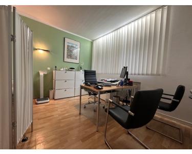 Das Erdgeschoss wird auf ca. 168 m² mit seinen diversen Behandlungsräumen, Empfang, Wartezimmer, Pausenraum und sanitäre Anlage als Praxis genutzt und soll in den nächsten Jahren auch noch fest vermietet bleiben, selbstverständlich zugänglich durch separaten Eingang. Modalitäten des Mietvertrages sind bei Kaufinteresse zu besprechen.