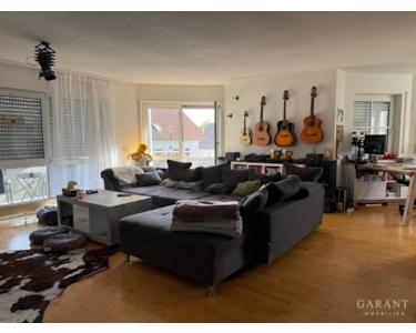 Die Wohnung befindet sich in einem gepflegten Mehrfamilienhaus und punktet durch großzügige und offen gestaltete Räume, große Fensterfronten und einen weitläufigen Wohnbereich mit direkten Zugängen zu den beiden großen Balkonen.
