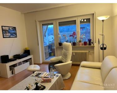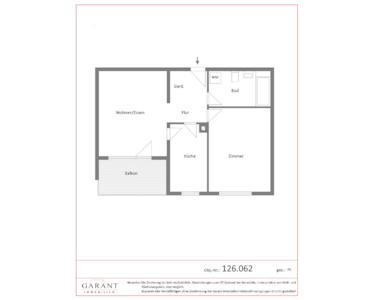 Die hell und freundlich gestaltete Wohnung im 2. Stock ist aufgeteilt in einen Flur, ein Schlafzimmer, ein Bad mit Badewanne, Waschbecken und WC, eine Küche mit Einbauküche und Essplatz sowie in ein einladendes Wohnzimmer. Über dieses gelangen Sie auf den nach Süden gerichteten Balkon.