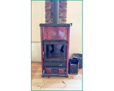 Kaminofen im Wohnzimmer der Dachgeschosswohnung