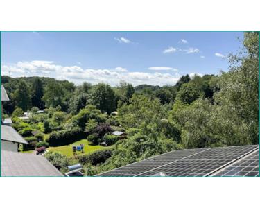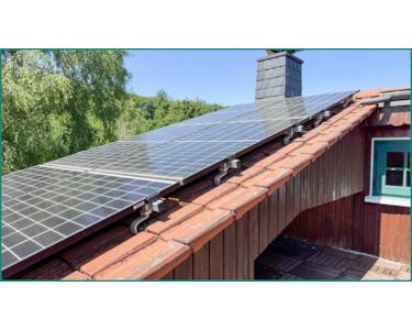 Blick auf das linke Hausdach mit Fotovoltaikpannele