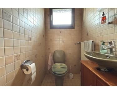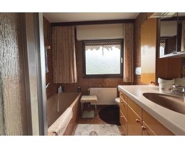 Das Erdgeschoss umfasst ein großzügiges Wohnzimmer, zwei Kinderzimmer, ein Elternschlafzimmer mit angrenzendem Wintergarten sowie eine separate Küche aus dem Jahr 1992. Zusätzlich befindet sich ein Badezimmer im Erdgeschoss. Die Zimmer sind gut geschnitten und bieten ausreichend Platz für eine gemütliche Einrichtung.