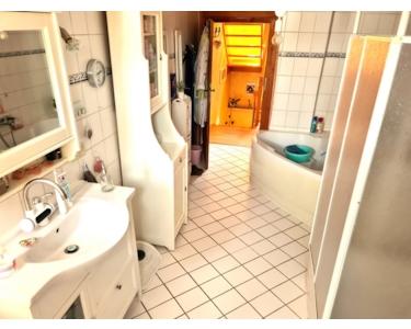# Tageslichtbadezimmer mit Badewanne und Dusche