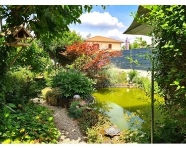 Im Außenbereich finden Sie einen wunderschönen ca. 250 m² großen Garten mit einem kleinen und einem größeren Teich sowie schönen Sitzbereichen vor. Auch vor dem Haus haben Sie einen kleineren Sitzbereich, welcher sich gegenüber Ihrer Garage mit davor befindlichem Stellplatz befindet.