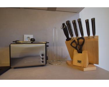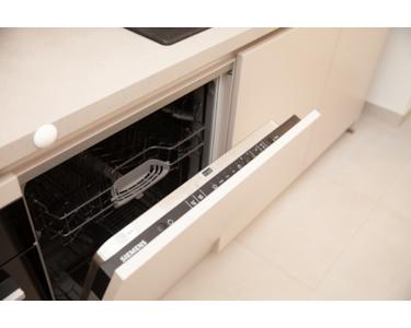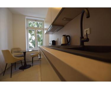 Die moderne Einbauküche ist im Mietpreis enthalten und mit hochwertigen Elektrogeräten ausgestattet.