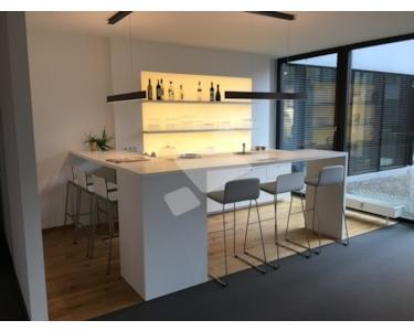 Moderne Büroausstattung mit z. B. Raufaser, Teppichboden, Doppelverglasung in Alurahmen, Fußboden-Kabelkanälen, außenliegenden Sonnenschutz-Jalousien, Beleuchtungskörpern, zum Teil Einbauschränken, Teeküchenzeilen.