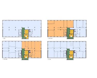 Abgeschlossene Büroeinheiten, die nach individuellen Mieterwünschen aufgeteilt werden können, getrennte WC-Anlagen, 2 Teeküchen; individuelle Raumaufteilung nach Mieterwunsch und Absprache mit dem Eigentümer möglich.