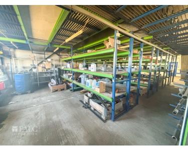 Die Haupthalle mit 36 x 24 Metern bietet ca. 864 m² Nutzfläche und beherbergt eine 28 x 24 Meter große Werkstatt mit 4 Meter Deckenhöhe – ideal für größere Produktionsprozesse. Ein integriertes Handlager über zwei Etagen sowie ein Bürobereich ermöglichen effizientes Arbeiten auf kurzen Wegen. Die Halle ist mit einer Diesel-Heizung (ca. Baujahr 2000) ausgestattet.