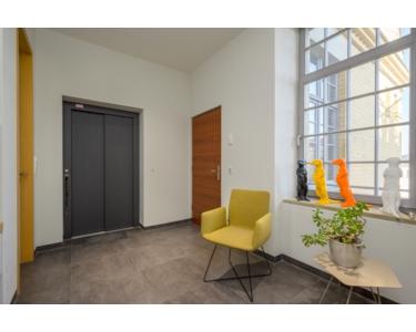 Die großzügig gestaltete Loft befindet sich im 2. Obergeschoss des viergeschossigen Gebäudes. Zum Wohnen, Schlafen, Essen, Baden und Relaxen stehen ca. 206 m² Wohlfühlfläche zur Verfügung. Per Industrietreppe oder direkt mit dem, mit Fingerprint gesicherten, Fahrstuhl gelangt man in die eigenen vier Wände. Ein Schlafzimmer mit Ankleide, ein großzügiges Bad, ein Gäste-WC und ein Ankleidezimmer unterstreichen den außergewöhnlichen Charakter der Wohnung. Durch den Einbau von Zwischenwänden könnten weitere Zimmer geschaffen werden. Der Eigentümer hat diese tolle Loft zusätzlich mit raffinierten technischen Highlights ausgestattet. Verbaute Ton- und Bild- High End Systeme von ARCAM, B&O, LOEWE etc., eine raffinierte Verschattungsanlage und eine komplett ausgestattete Einbauküche von Bulthaupt B3, mit Geräten von GAGGENAU, die voll auf das einmalige Ambiente der Wohnung abgestimmt wurden. Diese sind in einem Ausstattungspaket vom Verkäufer 2018 zum Zeitwert von 55.000,00 € vom damaligen Voreigentümer erworben worden und sind im Kaufpreis inbegriffen.